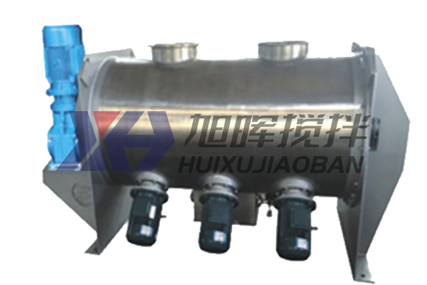 犁刀混合機(jī)由傳動部件、攪拌器、圓形桶體、高速飛刀組成。攪拌器的犁頭在高速運(yùn)轉(zhuǎn)時對物料除了軸向分散以外,還可帶動物料沿圓形簡體作圓周流動,有效解決物料分層問題,中間的高速飛刀進(jìn)行輔助混合和對結(jié)塊料分散解聚的作用。物料在犁頭和飛刀的雙重作用下能在較短時間內(nèi)均勻混含。